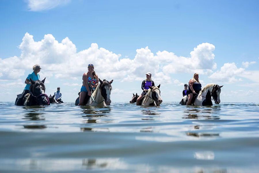 This is a once-in-a-lifetime adventure that lets you experience horseback riding near Anna Maria Island. Begin your excursion by meeting our beautiful, amazing horses. 95% of them are rescues! After a brief safety meeting and a lesson on how to swim with the horses, our horses will swim while you ride them. The horses are never forced to swim; this is actually their favorite part! So grab hold of their manes and hang on tight! This almost feels like you’re flying through the air.