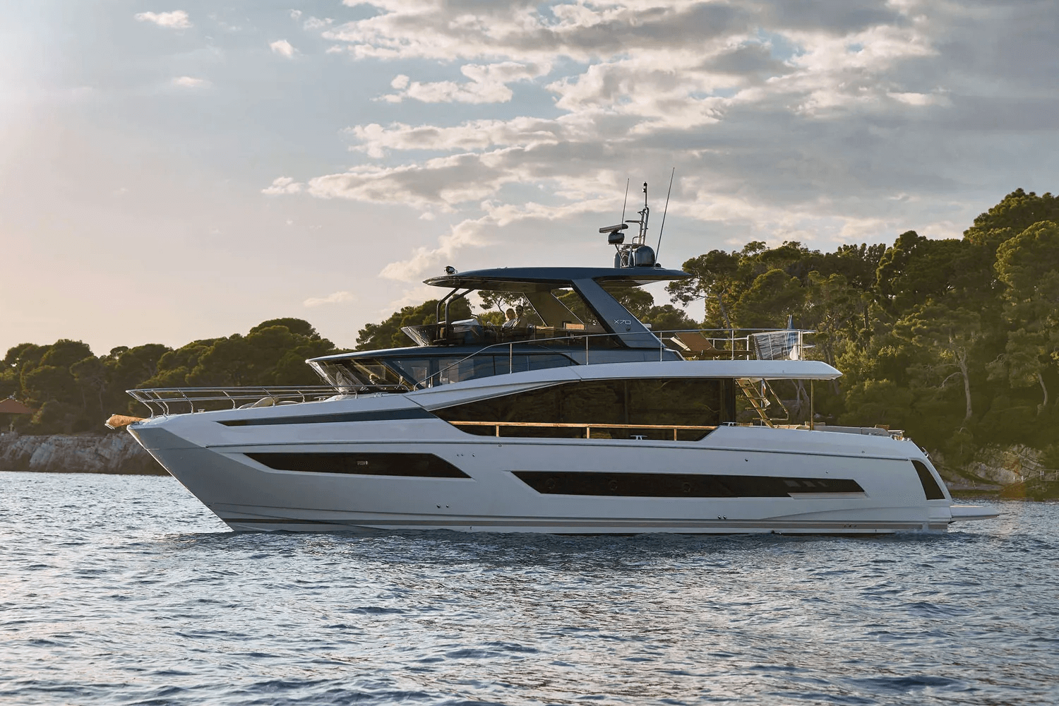 • Our 70′ Prestige is great for hosting parties for any occasion and has enough room for everyone on board. Recline on the flybridge with a fully retractable sunroof to enjoy the beautiful Florida sunshine or watch the sunset from the bow while cruising the gulf coast. With infinity, the options are infinite!